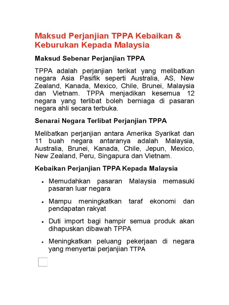 Maksud Perjanjian Tppa Kebaikan Keburukan Kepada Malaysia Pdf